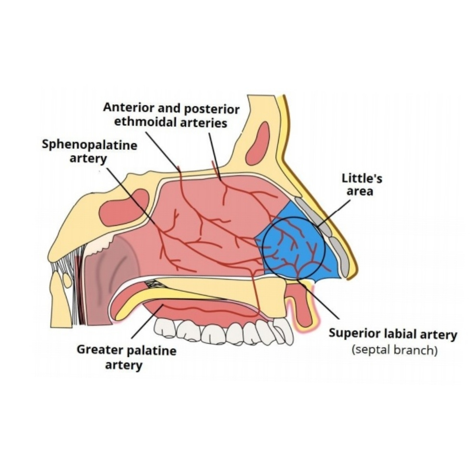 90% occurs from anterior nose. Most commen site is litle’s area. Because there are 4 arteries anastomose in here. Also bleeding can occur from posterior part of nose,septem and lateral wall.